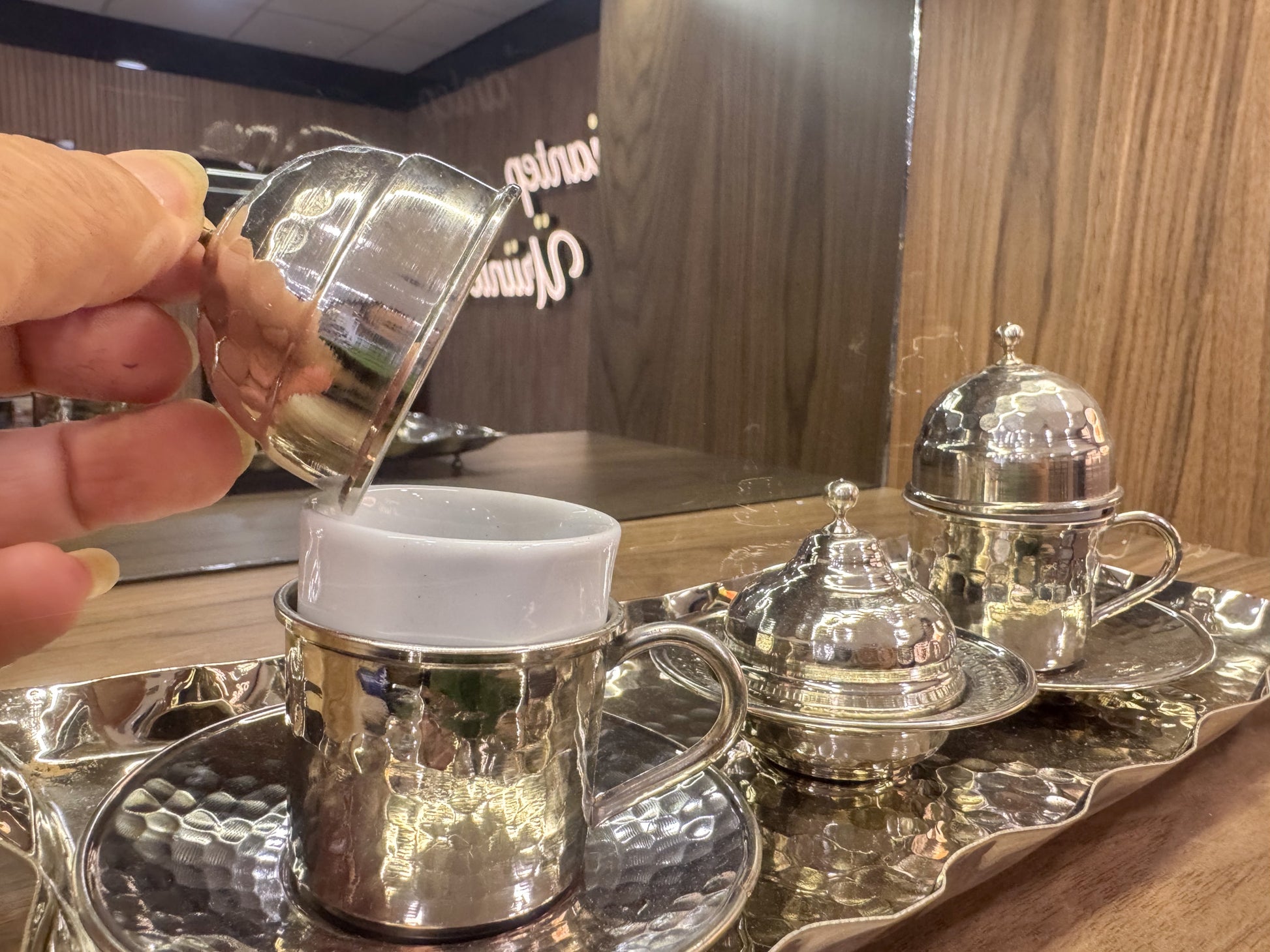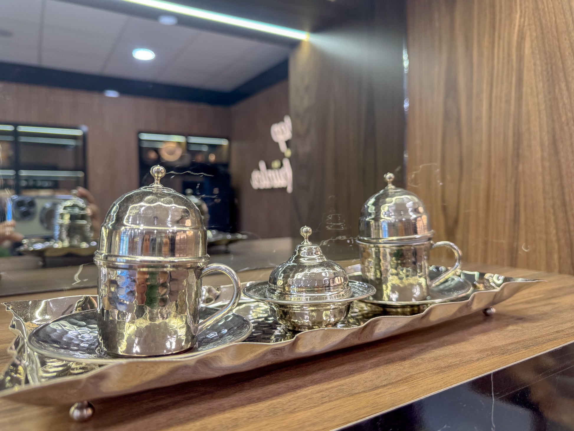 Bakır Lokumluklu Tepsili Gümüş 2 Kişilik Türk Kahvesi Fincan Takımı Sunumluk